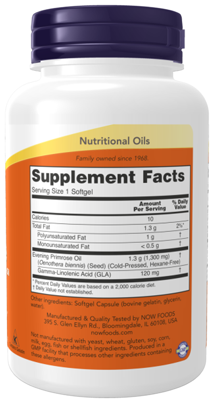 Масло примулы вечерней NOW содержит натуральную гамма-линоленовую кислоту (ГЛК) - жирную кислоту омега-6, которая также встречается в маслах семян огуречника и чёрной смородины. Хотя организм способен синтезировать ГЛК из других жиров, её поступление в готовом виде более эффективно для поддержания функций организма.