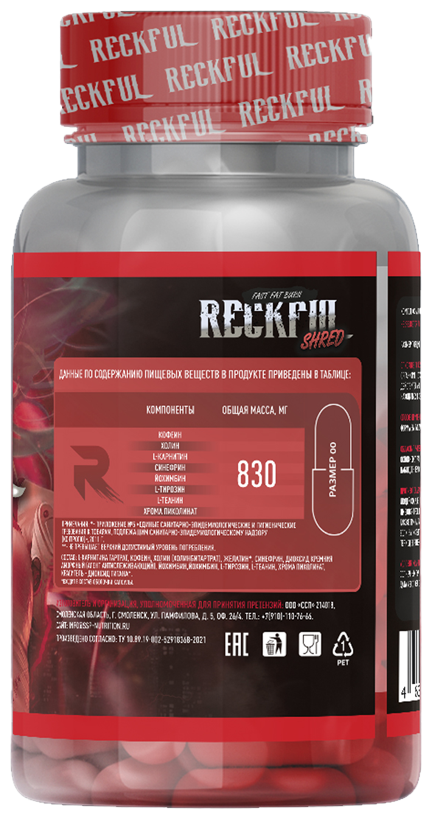 Reckful Shred - инновационная добавка к пище, разработанная для поддержки ваших спортивных и фитнес-целей. Специализированный состав усиливает процесс расщепления жировых молекул, ускоряя обмен веществ. Кофеин в составе продукта повышает концентрацию и энергетику, а другие активные компоненты помогут контролировать аппетит и поддерживать активное настроение.